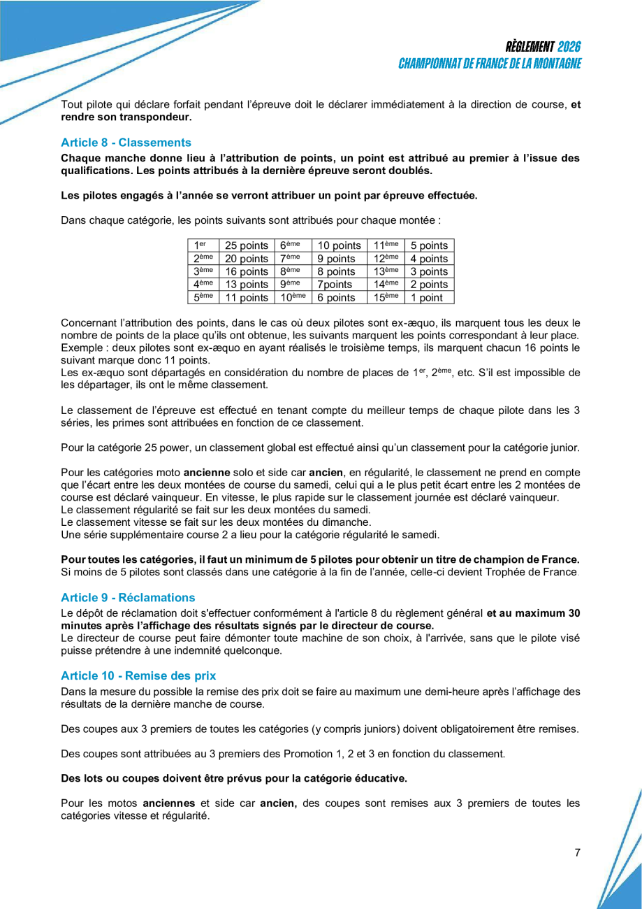 Reglement Championnat de France de la Montagne